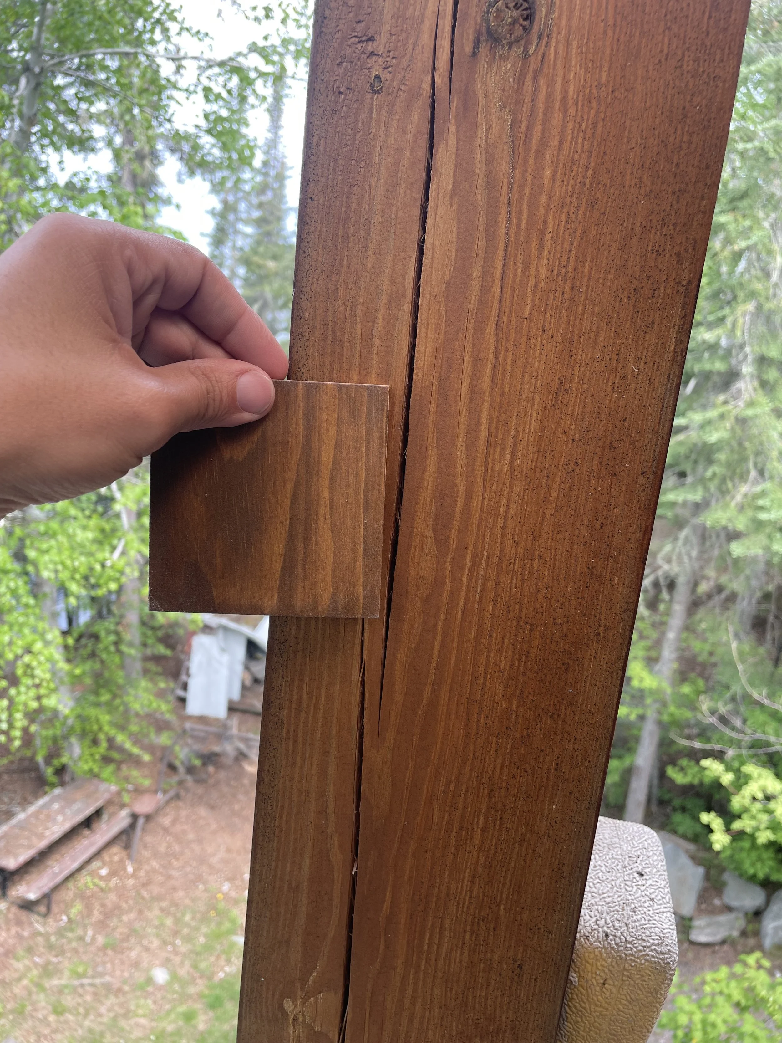 Every timber frame or log home is unique, and so is each restoration project. It’s not always about finding the perfect colour match—it’s about choosing the most cohesive colour overall.